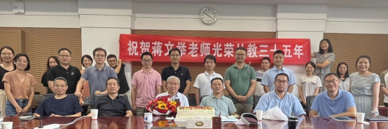 教授委员会主任、二级教授、今年从教35周年的蒋文举作为教师代表,与大家分享了三十五年教师工作中的难忘回忆与感悟。蒋老师动情说到,最大的幸福莫过于看着自己的学生成长成才!他勉励年轻教师继续努力,力争获得优异教育教学成绩、收获更多科技攻关成果。随后,青年教师代表为蒋老师送上代表祝福的鲜花与蛋糕,祝愿蒋老师身体健康,幸福快乐!