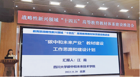 常务副院长江霞教授作为获批教育部战略性新兴领域“十四五”高等教育教材体系建设团队——未来产业(碳中和)领域的团队负责人参加并作专题汇报。