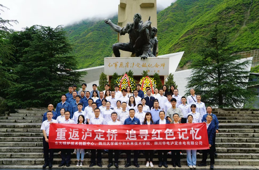 活动中,党员同志重走泸定桥,在红军飞夺泸定桥纪念碑前开展敬献花篮、重温入党誓词等纪念活动,参观红军飞夺泸定桥纪念馆,深刻感悟伟大长征精神;在中国华电与东方电气合作建设的氢能科技产业园实地参观碱性电解水制氢、有机液态储氢中试装置,围绕氢能技术进行交流,让红色基因与绿色低碳愿景在新时代同频共振。