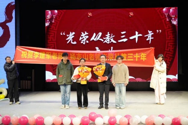 “光荣从教三十年”庆典活动上,祝贺并表彰李建军教授与杨志山副教授两位老师。李建军教授作为教师代表(成人电影