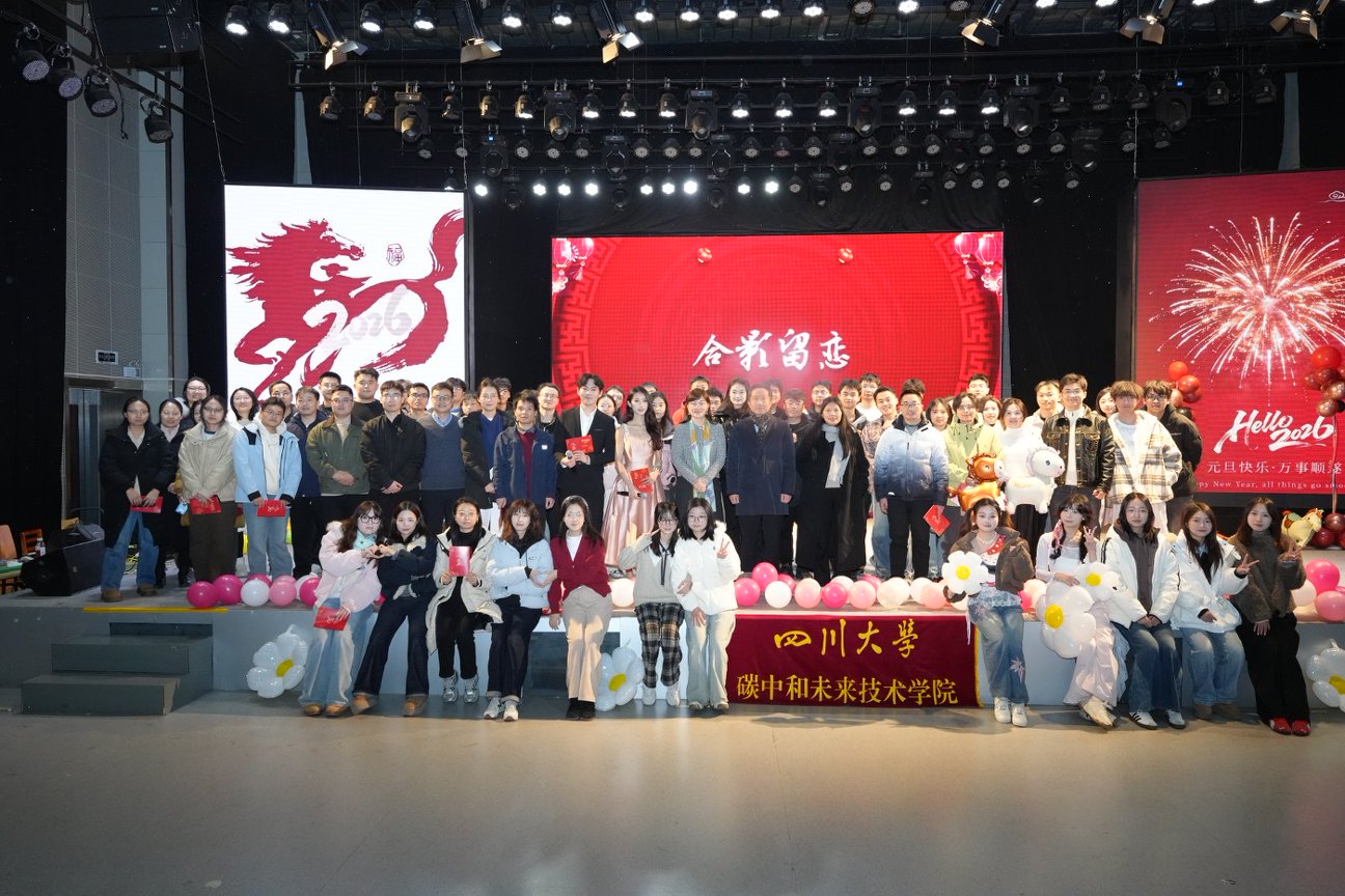 在江安校区隆重举办2026新年联欢会。场馆内灯火璀璨、笑语盈盈,一场精彩纷呈的联欢在此热烈上演,为全体师生送上了真挚的新年祝福。联欢会由硕士生丁月和王子成主持。
