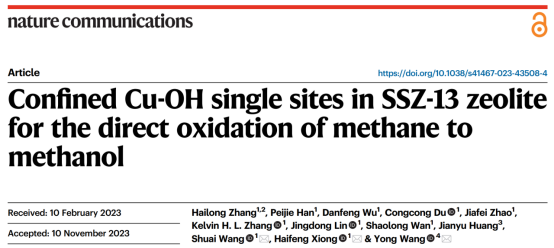 专职博士后张海龙在Nature Communications期刊上发表了一篇题为“Confined Cu-OH single sites in SSZ-13 zeolite for the direct oxidation of methane to methanol”的文章。我院博士后张海龙为文章第一作者,与厦门大学及美国华盛顿州立大学合作发表。